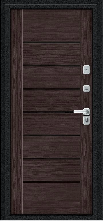 Дизайнерская входная Дверь Браво Thermo Техно Д2/BChrome Букле черное/Wenge Melinga класса Люкс с несколькими листами стали, звукоизоляцией и теплоизоляцией. Утепленный короб и полотно защитят от сквозняков и шумов. Модель не только надежная, комфортная, защищенная и высочайшего качества, но и очень красивая! Будет отлично сочетаться с интерьером дома, квартиры или офиса. Сейчас действует выгодное предложение по цене: 60 410 руб.